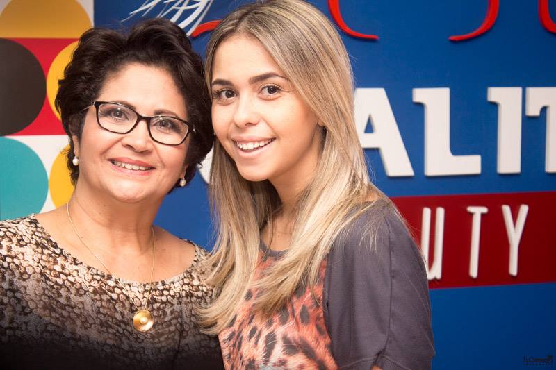 Eu e a Raisa com a Juciane Parazzi, responsável por cuidar dos nossos cabelos.